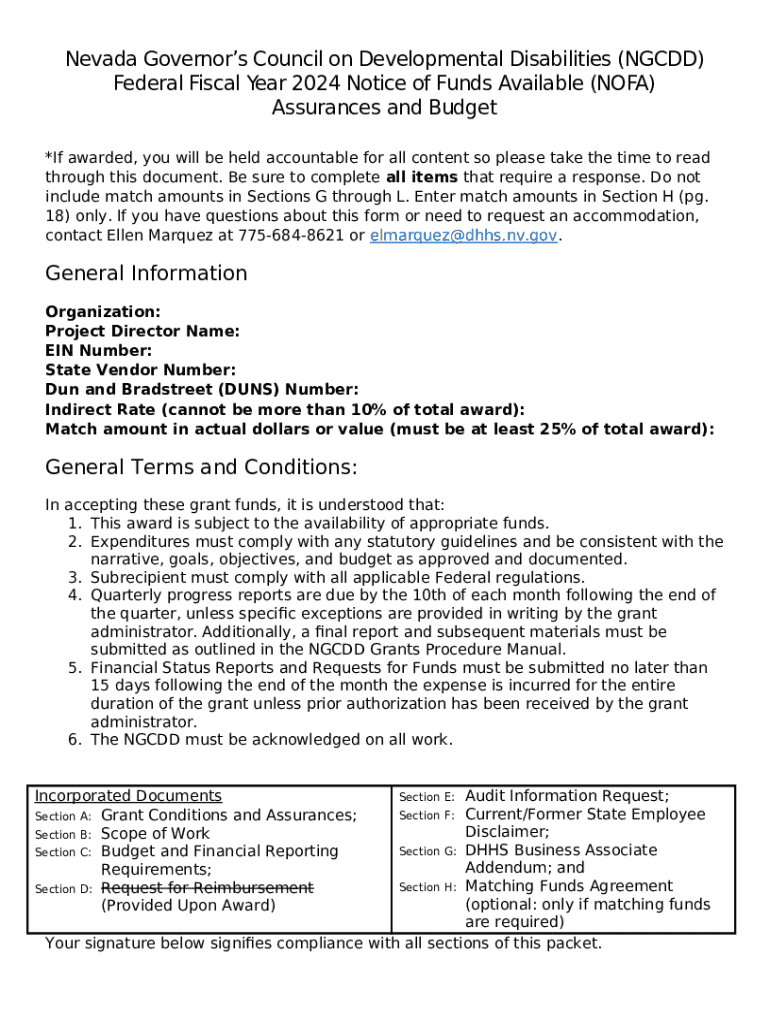 Template Nevada Governor's Council on Developmental Disabilities instructions