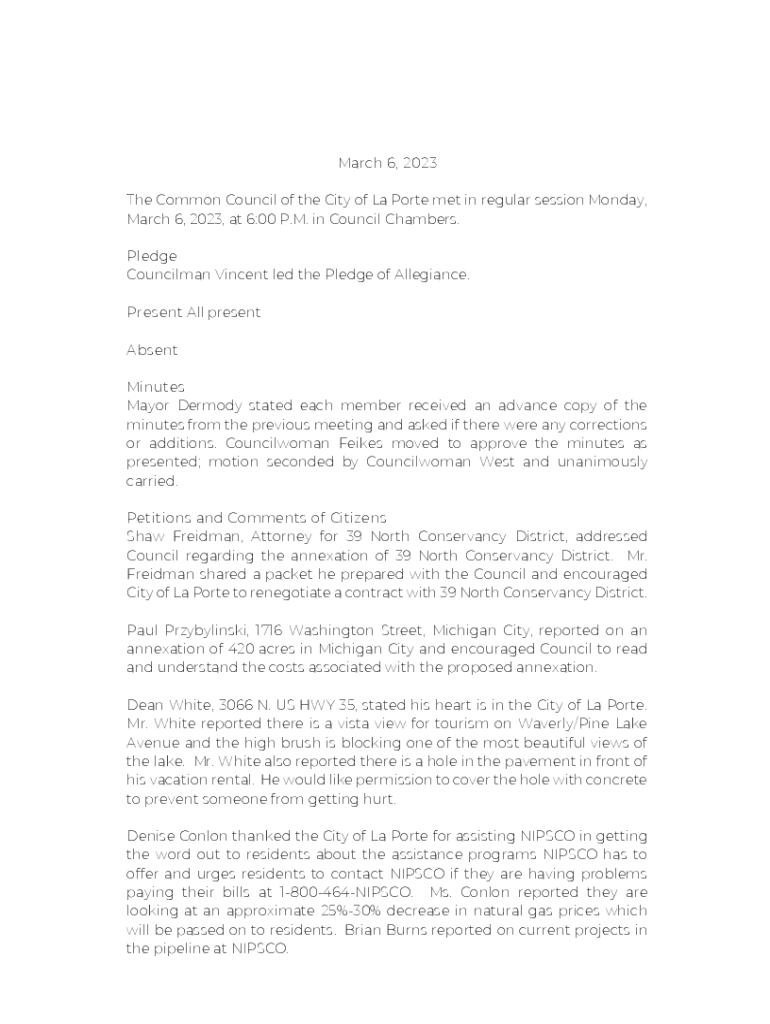 March 6, 2023, at 6:00 P.M. in Council Chambers.