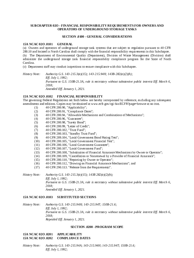 Instructions for the form Tank Owner And Operator Financial Responsibility Ination - reports oah state nc