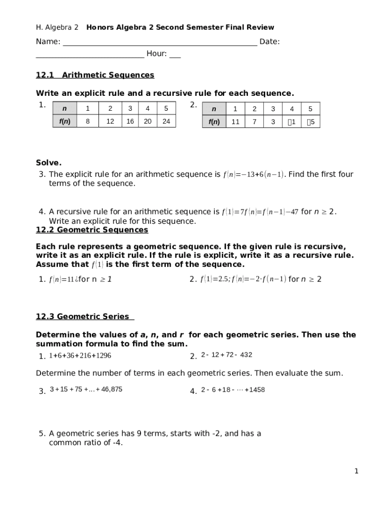 What is H. Algebra 2 Name Form?