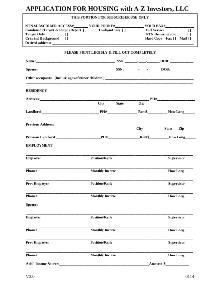 APPLICATION FOR HOUSING with A-Z Investors, LLC template instructions