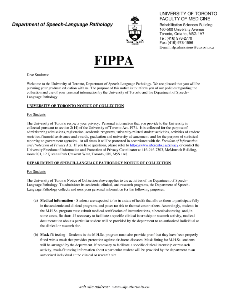Get the free FIPPA - Speech-Language Pathology - University of Toronto