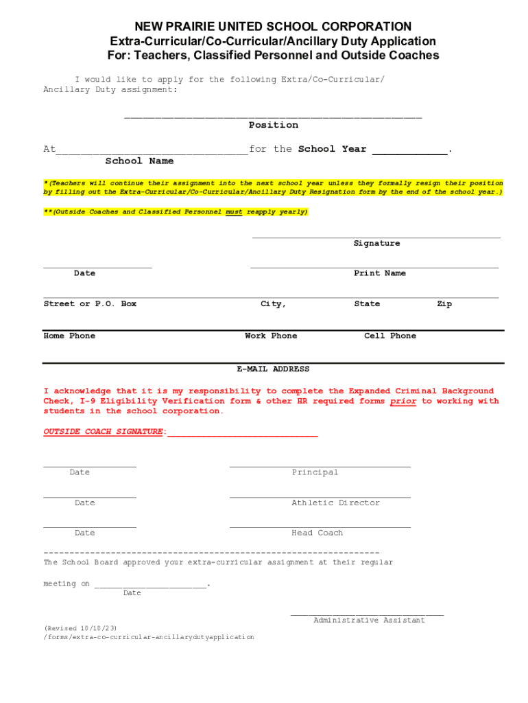 Edit your extra-curricularco-curricularancillary duty application for form online