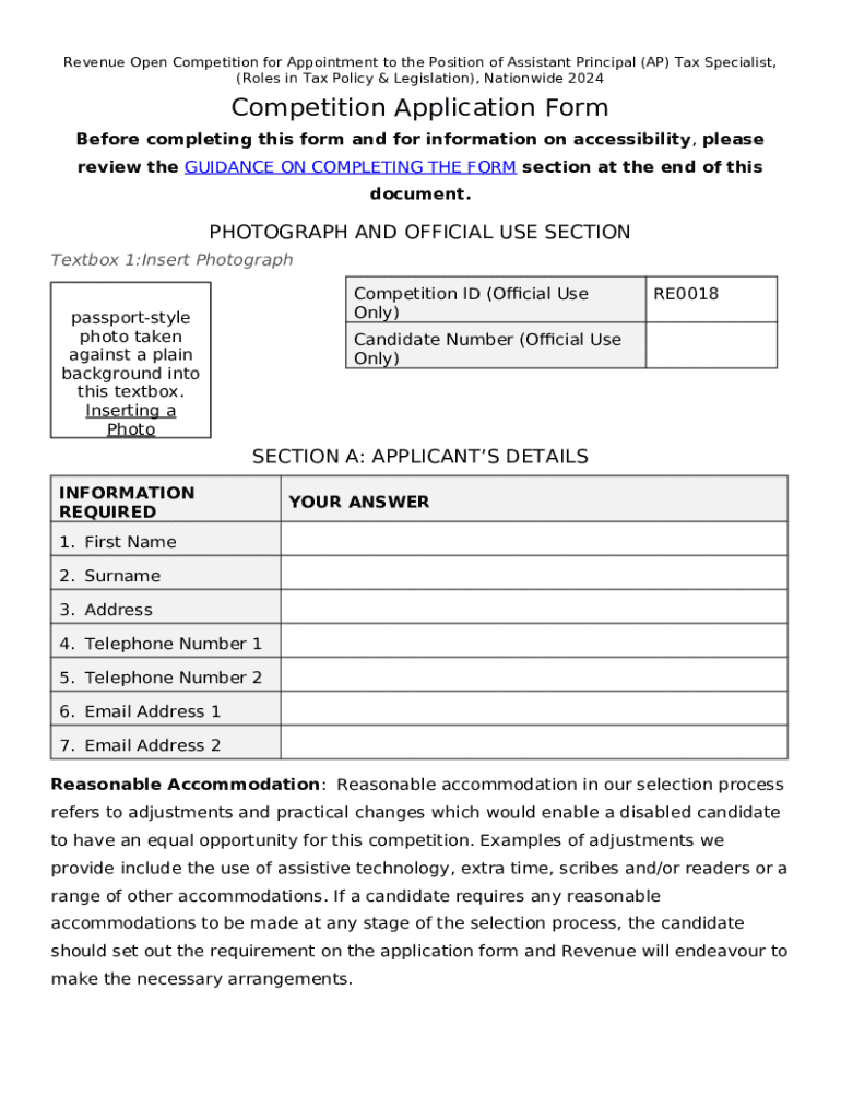 Template 2024 Assistant PrincipalTax Specialist (Roles in Tax Policy & Legislation) Nationwide. Accessible Application instructions