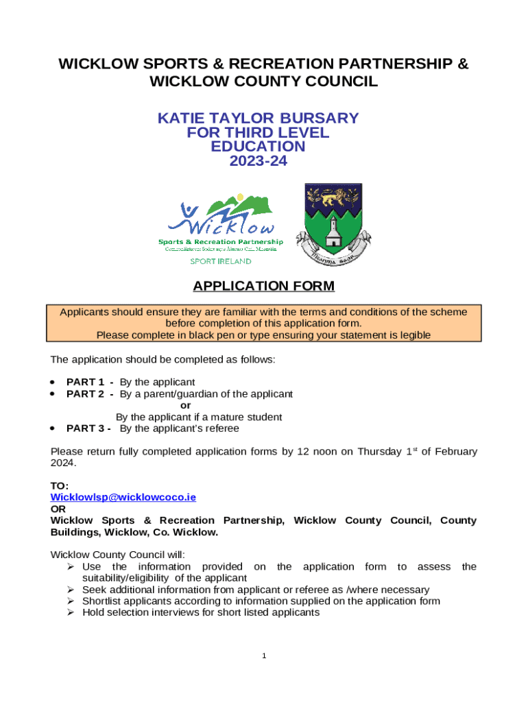 Katie Taylor bursary now open for applications to third- ... template instructions