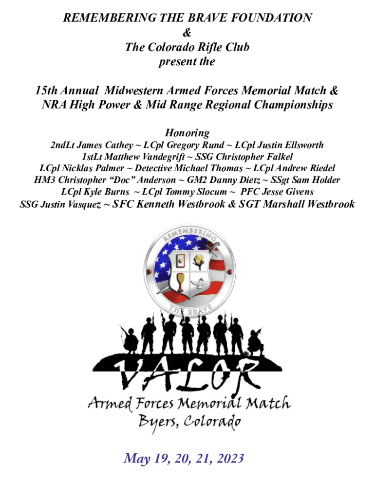 REMEMBERING THE BRAVE FOUNDATION & The Colorado Rifle Club present the 15th Annual Midwestern Armed Forces Memorial Match & NRA High Power & Mid Range Regional Championships Honoring 2ndLt James Cathey
