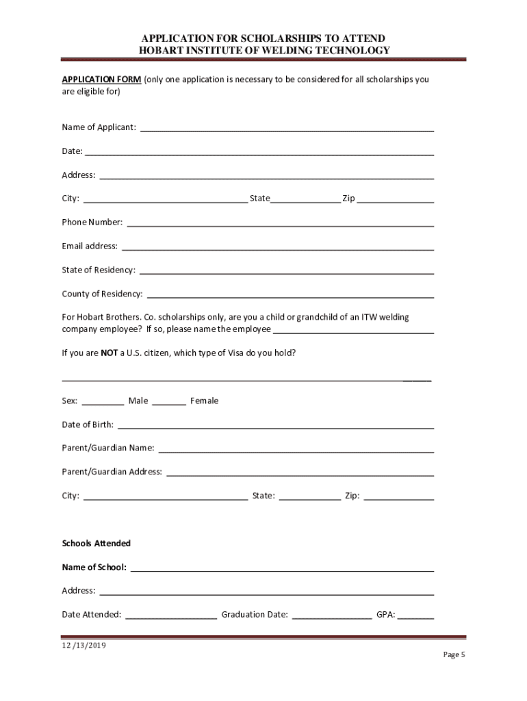 APPLICATION FOR SCHOLARSHIPS TO ATTEND HOBART INSTITUTE OF WELDING TECHNOLOGY HOBART INSTITUTE OF WELDING TECHNOLOGY FUNDED SCHOLARSHIPS Hobart Institute of Welding Technology (HIWT) is pleased to
