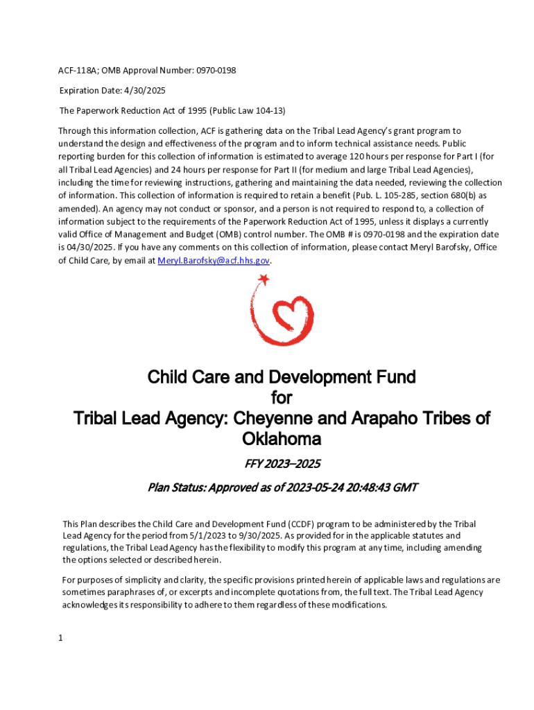 ACF118A; OMB Approval Number: 09700198 Expiration Date: 4/30/2025 The Paperwork Reduction Act of 1995 (Public Law 10413) Through this information collection, ACF is gathering data on the Tribal Lead