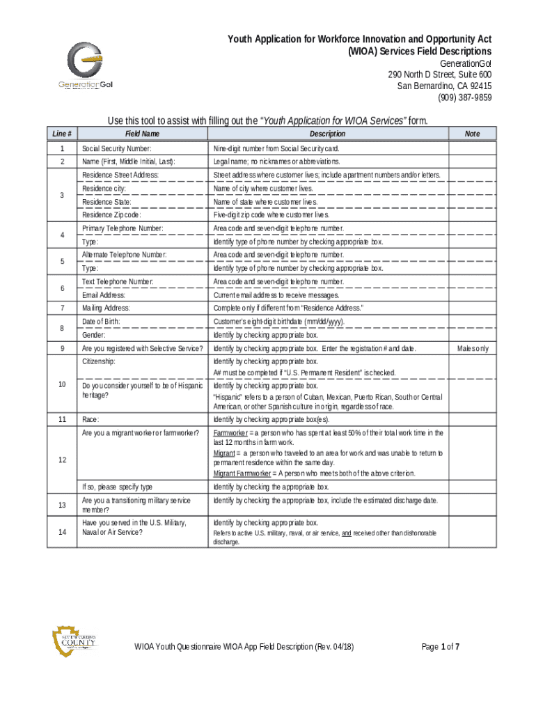 Instructions for the form Use this tool to assist with filling out the Youth Application ...