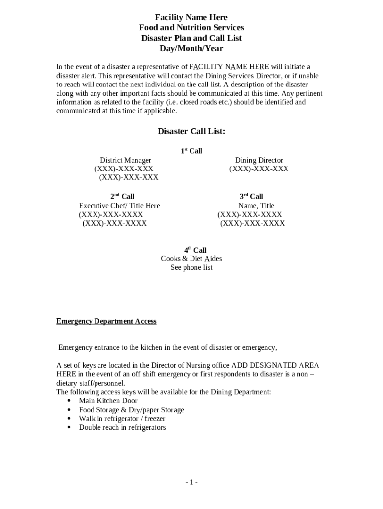 How to fill out EMERGENCY FOODSERVICE Dining Services Disaster Plan