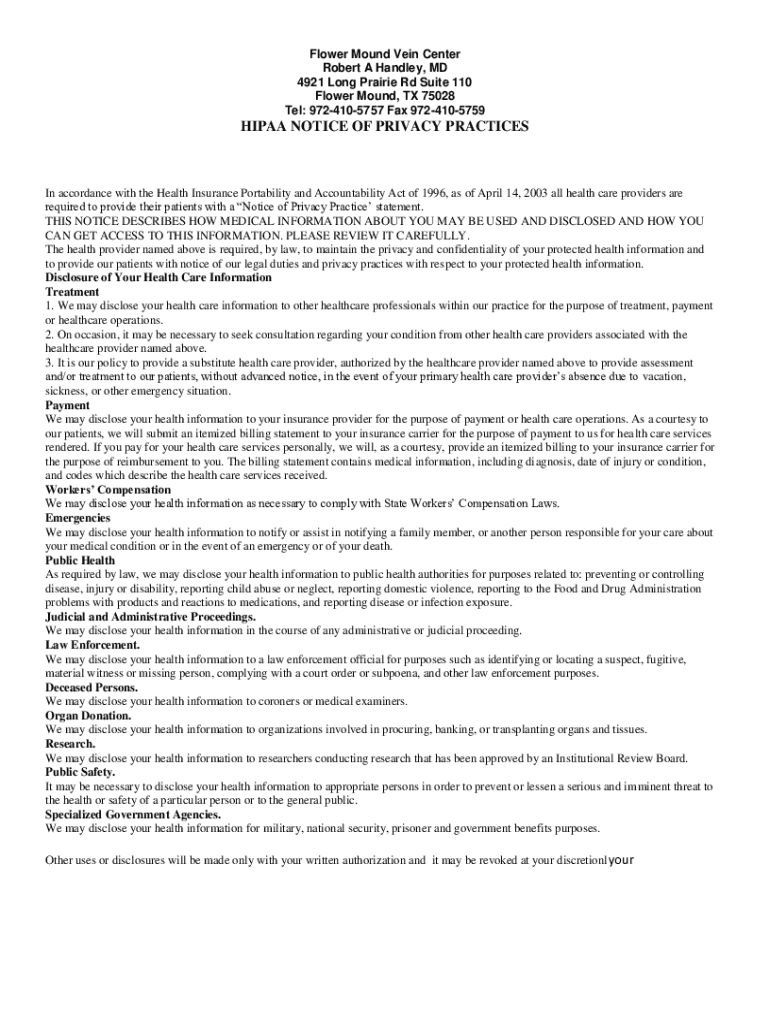 Tel: 9724105757 Fax 9724105759HIPAA NOTICE OF PRIVACY PRACTICES In accordance with the Health Insurance