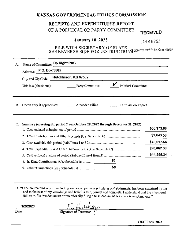 KANSAS GOVERNMENTAL ETHICS COMMISSIONRECEIPTS AND EXPENDITURES REPORT