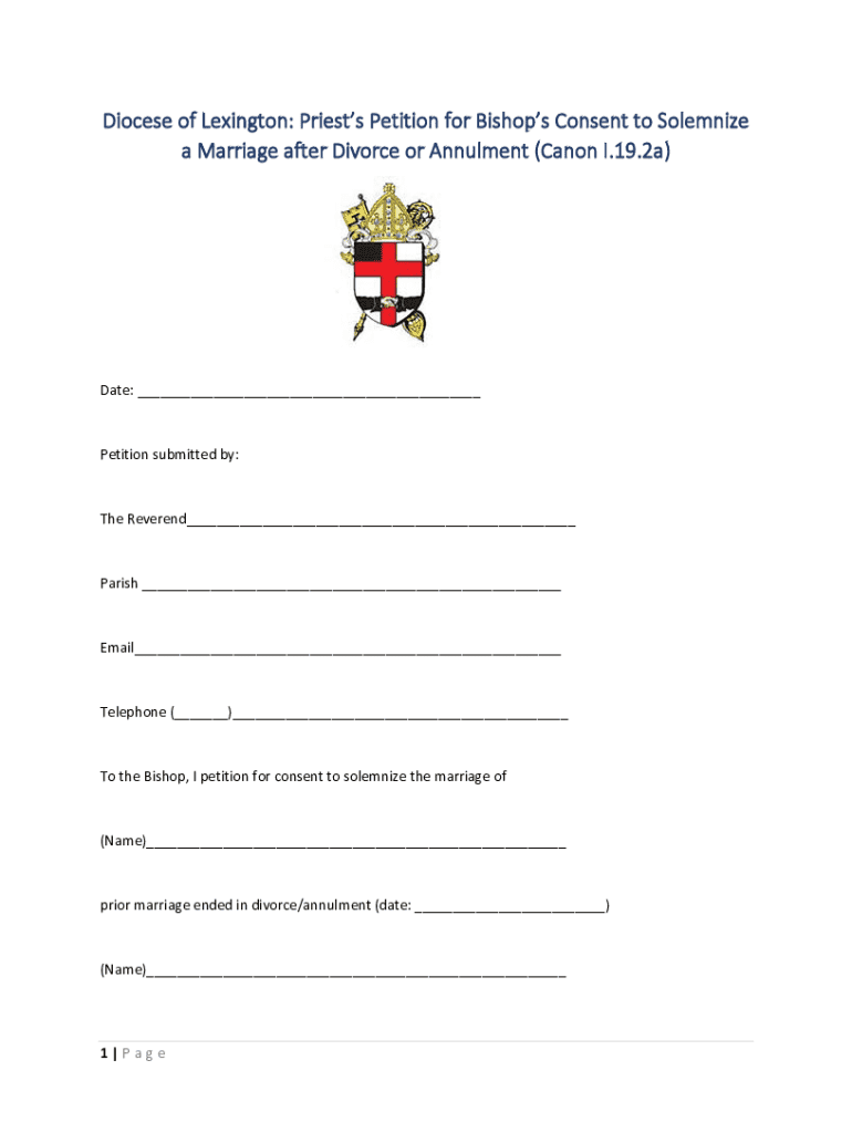 Get the free Petitioners Form Bishop's Consent for re-Marriage after ...