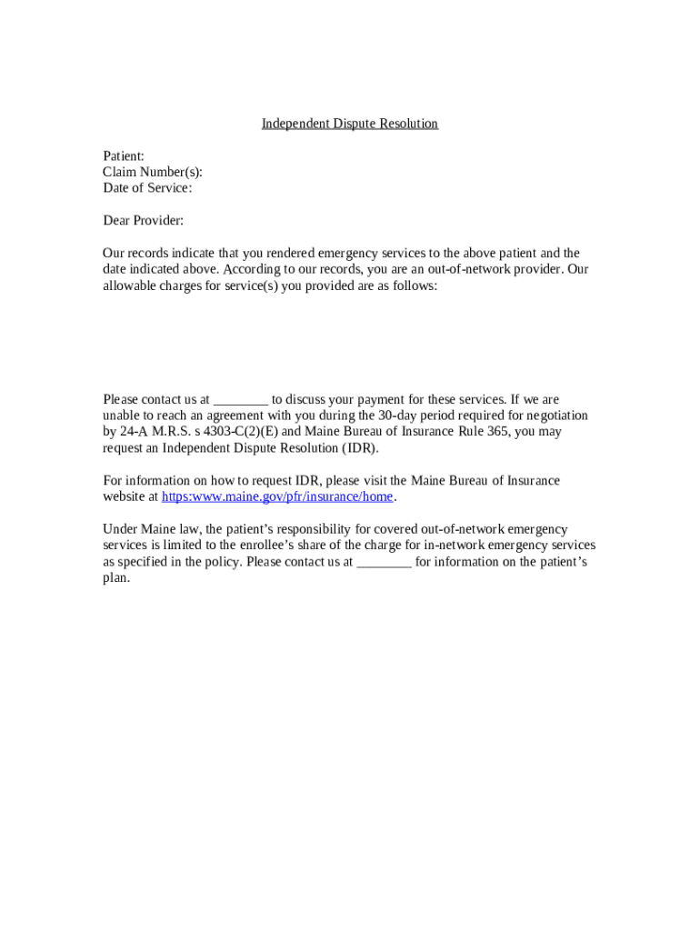 Template Non Emergency Services Independent Dispute Resolution ... instructions