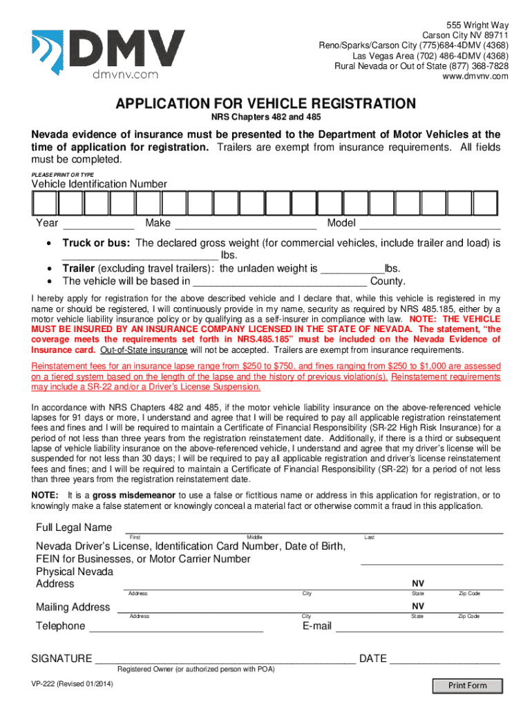 Anyone who owns a vehicle in Nevada and needs to register it with the DMV will need to fill out the 2011 form NV DMV.