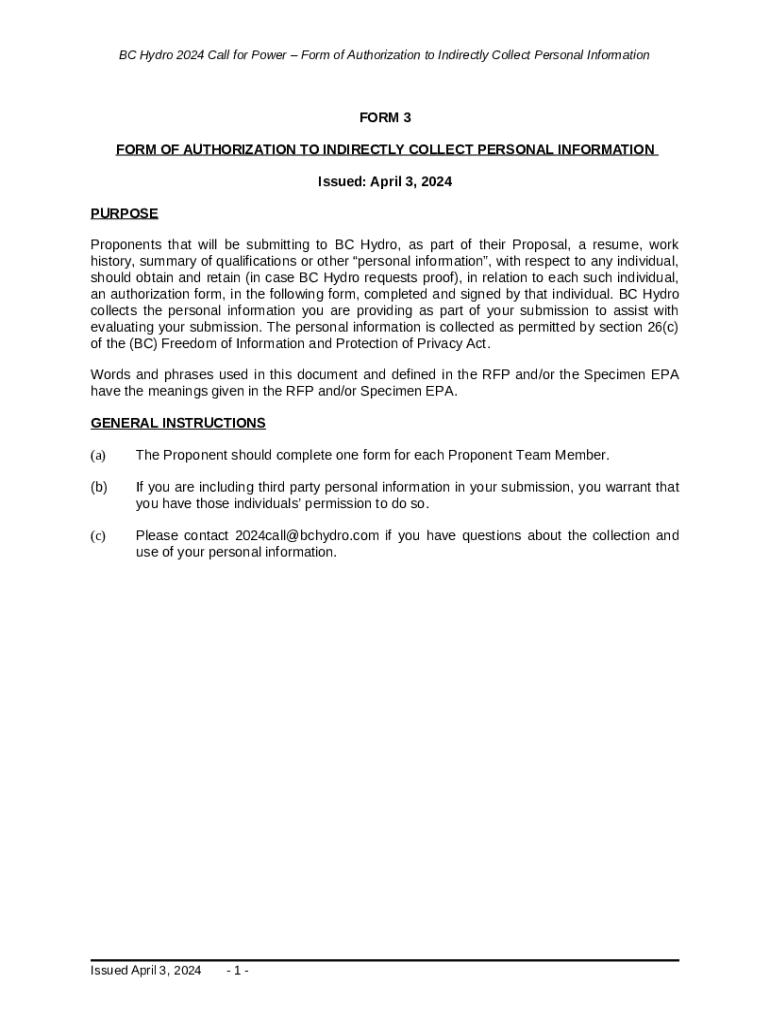 Instructions for the form 3 - Authorization to Collect Personal Info
