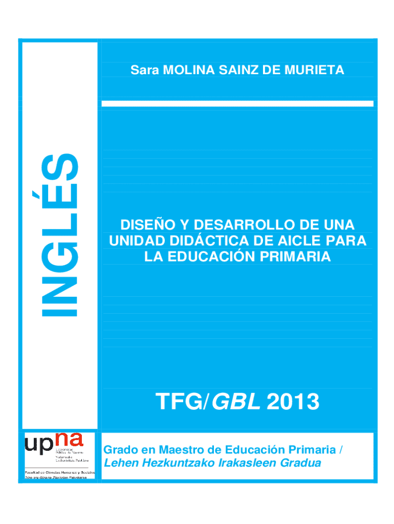 INGLSSara MOLINA SAINZ DE MURIETADISEO Y DESARROLLO DE UNA UNIDAD DIDCTICA DE AICLE PARA LA EDUCACIN PRIMARIATFG/GBL 2013 Grado en Maestro de Educacin Primaria / Lehen Hezkuntzako Irakasleen GraduaGrado