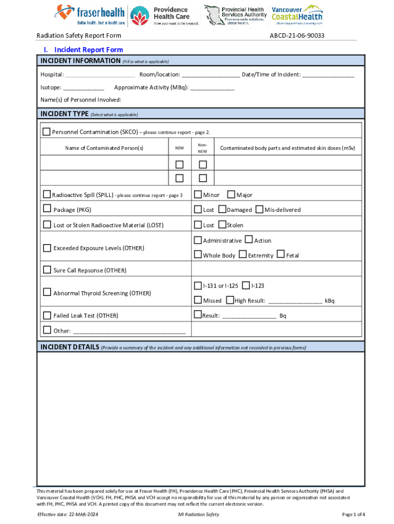 Radiation Safety Report FormABCD210690033I. Incident Report Form