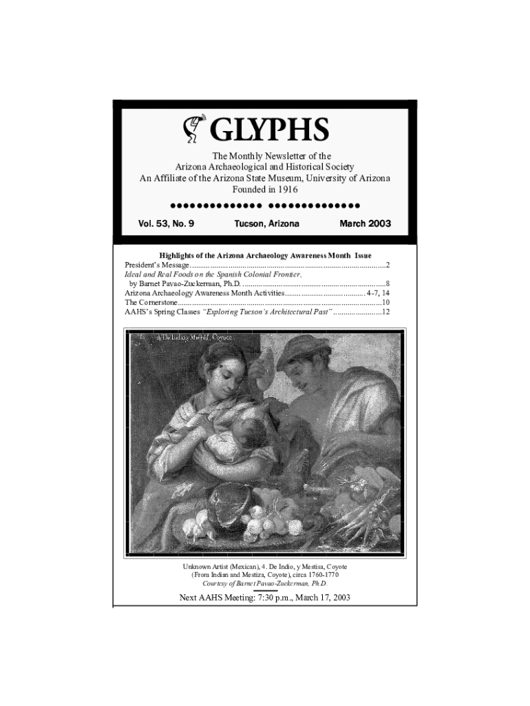 GLYPHS The Monthly Newsletter of the Arizona Archaeological and Historical Society An Affiliate of the Arizona State Museum, University of Arizona Founded in 1916 Vol. 53, No. 9Tucson, ArizonaMarch