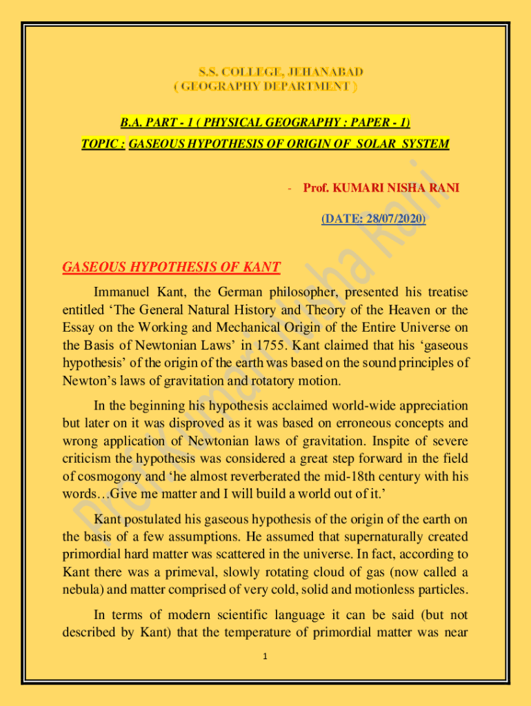 (DATE: 28/07/2020)GASEOUS HYPOTHESIS OF KANT