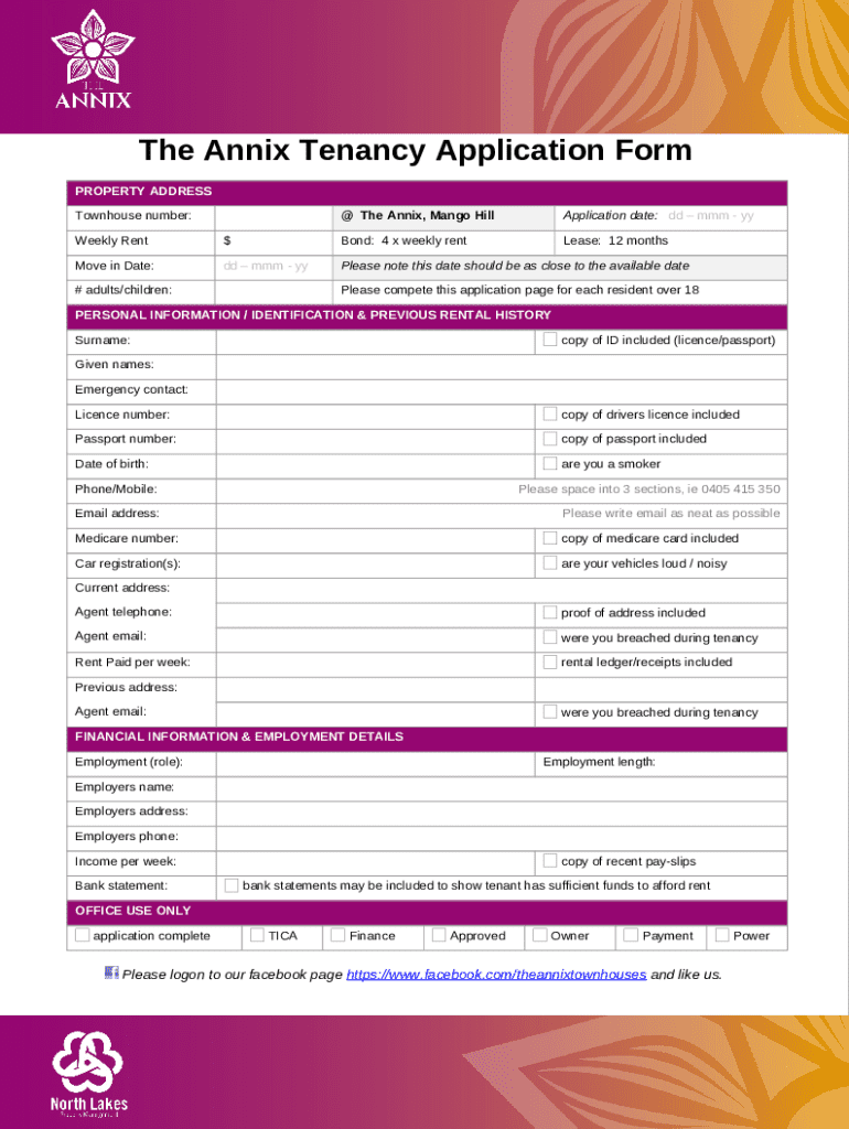 The The Annix Tenancy Application is a writable document that should be submitted to the specific address in order to provide some info. It needs to be filled-out and signed, which may be done manually in hard copy, or using a particular software such as PDFfiller. It lets you complete any PDF or Word document directly from your browser (no software requred), customize it according to your needs and put a legally-binding e-signature. Once after completion, the user can easily send the The Annix Tenancy Application to the relevant receiver, or multiple recipients via email or fax. The editable template is printable too thanks to PDFfiller feature and options proposed for printing out adjustment. Both in electronic and physical appearance, your form should have a clean and professional appearance. You can also save it as the template to use later, without creating a new blank form from the beginning. You need just to edit the ready form.