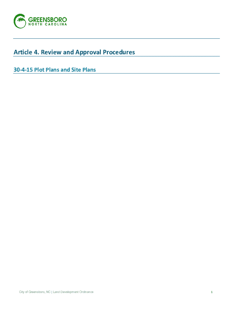 Article 4. Review and Approval Procedures 30415 Plot Plans and Site PlansCity of Greensboro, NC | Land Development Ordinance130415.6 Review and Approval A.Site Plans and Plot Plans 1. Site plans and
