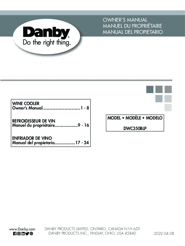 OWNERS MANUAL MANUEL DU PROPRITAIRE MANUAL DEL PROPIETARIO * *WINE COOLER Owners Manual...............................1 8 REFROIDISSEUR DE VIN Manuel du propritaire...................9 16MODEL MODLE