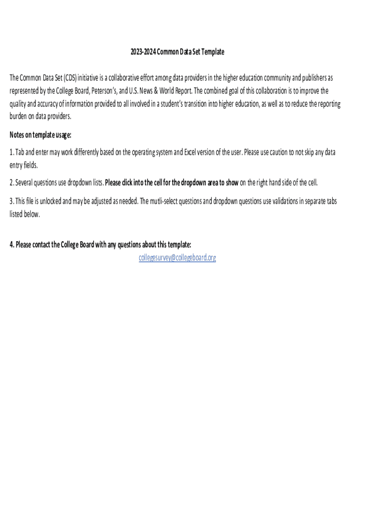 20232024 Common Data Set Template The Common Data Set (CDS) initiative is a collaborative effort among data providers in the higher education community and publishers as represented by the College
