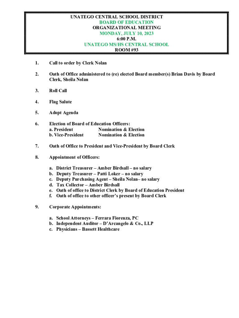 Typically, individuals or organizations that have relevant information to share with the Unatego community, such as local government officials, schools, and community organizations, are required to file the noticeboard.