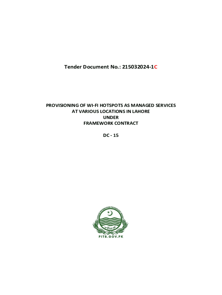 Tender Document No.: 2150320241CPROVISIONING OF Wi-Fi HOTSPOTS AS MANAGED SERVICES