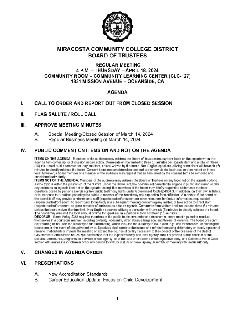 MIRACAST COMMUNITY COLLEGE DISTRICT