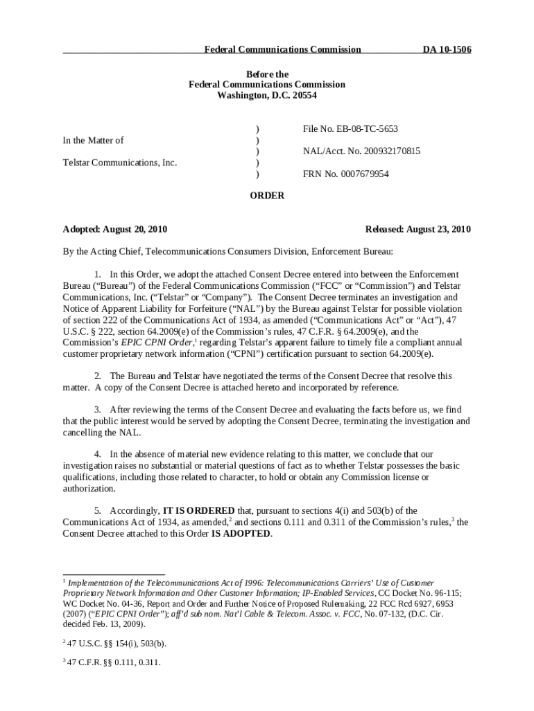 The Privacy policyTel-Star - ftp fcc is a fillable form in MS Word extension needed to be submitted to the specific address in order to provide certain information. It needs to be completed and signed, which can be done in hard copy, or using a particular solution such as PDFfiller. This tool helps to complete any PDF or Word document right in the web, customize it according to your purposes and put a legally-binding electronic signature. Right after completion, the user can send the Privacy policyTel-Star - ftp fcc to the relevant individual, or multiple recipients via email or fax. The blank is printable too because of PDFfiller feature and options offered for printing out adjustment. In both electronic and physical appearance, your form will have a organized and professional appearance. You may also turn it into a template for later, so you don't need to create a new blank form from the beginning. All you need to do is to amend the ready document.