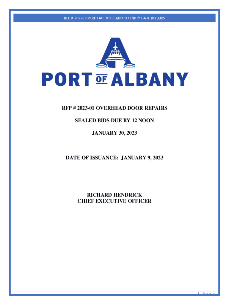 RFP # 2022 OVERHEAD DOOR AND SECURITY GATE REPAIRS RFP # 2022 OVERHEAD DOOR AND SECURITY GATE REPAIRS RFP # 202301 OVERHEAD DOOR REPAIRS