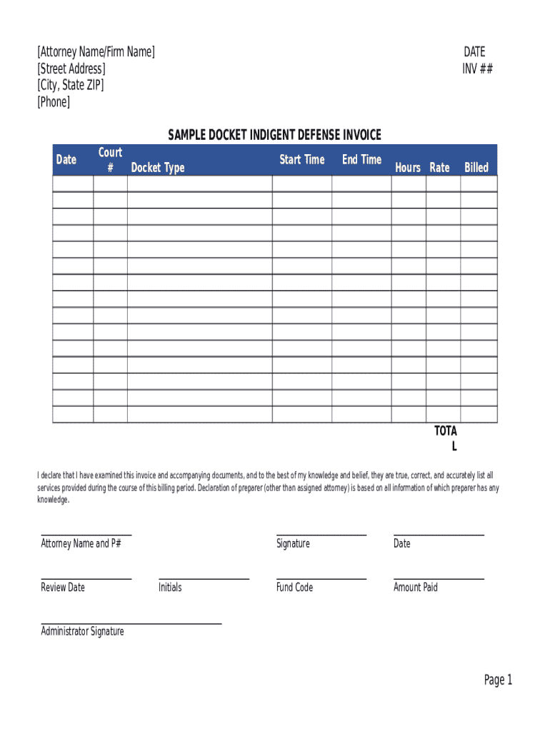 Template Hourly Billing Court-Appointed Attorney Checklist instructions