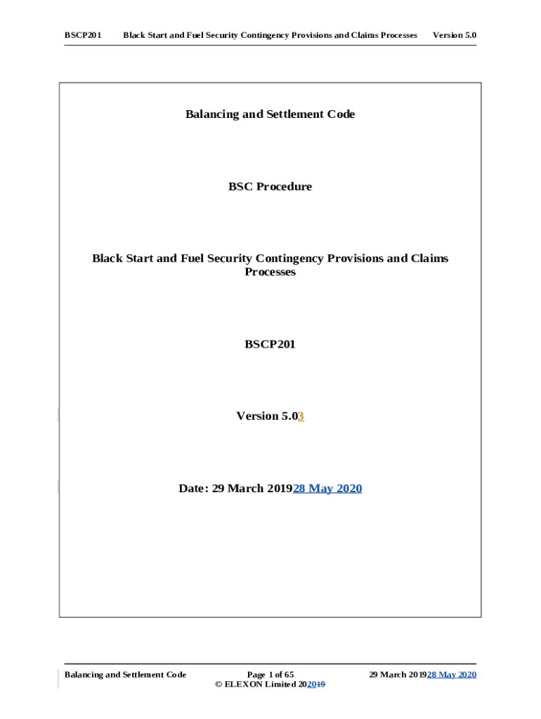 Frequently asked questions about BSCP201: Black Start and Fuel Security Contingency Provisions ... template