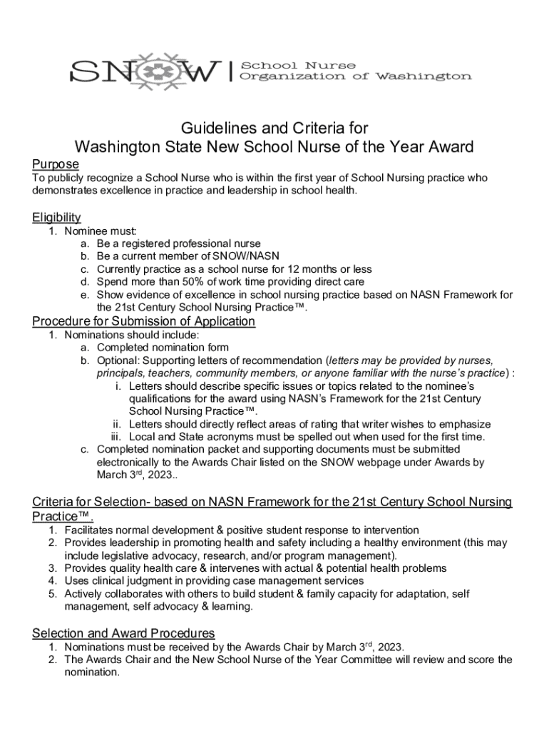 To publicly recognize a School Nurse who is within the first year of School Nursing practice who