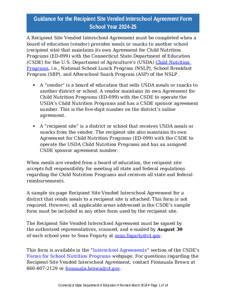 Template Recipient Site Vended Interschool Agreement instructions