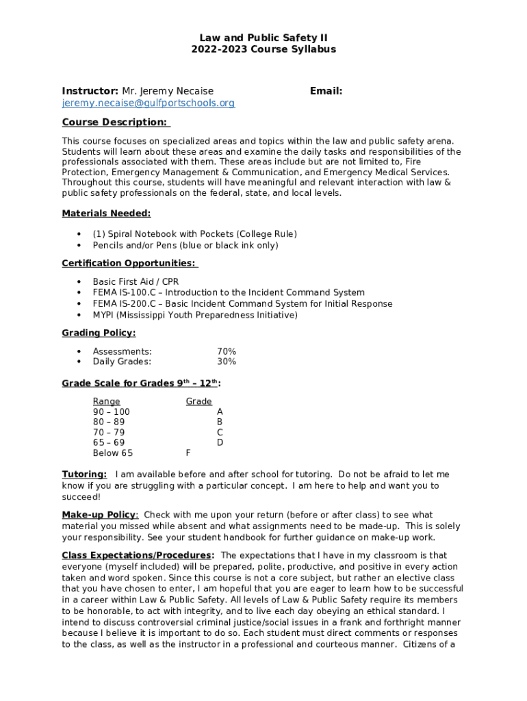 Instructions for the Necaise, Jeremy - Law and Public Safety / Meet the Teacher form