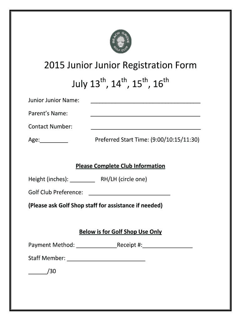 Get the free 2015 Junior Junior Registration Form