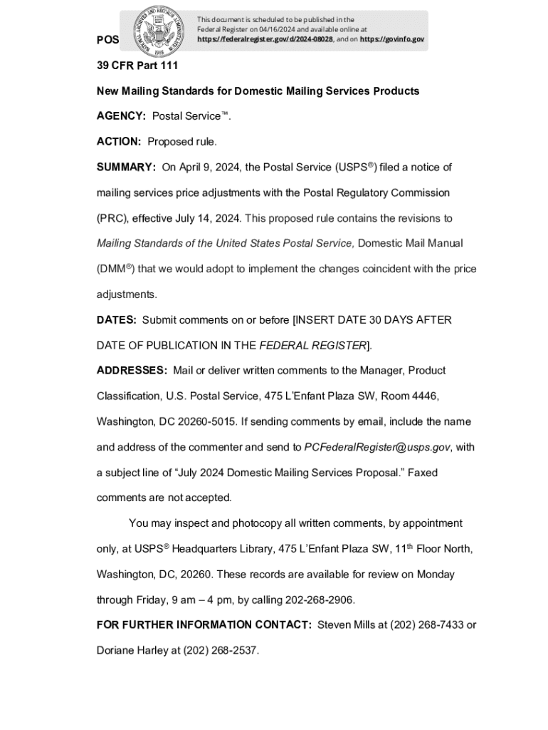 https://federalregister.gov/d/202408028, and on https://govinfo.gov39 CFR Part 111