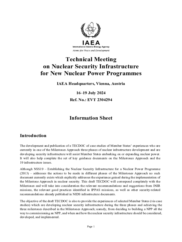 Technical Meeting on Nuclear Security Infrastructure for New Nuclear Power Programmes IAEA Headquarters, Vienna, Austria 1619 July 2024 Ref. No.: EVT 2304294Information Sheet Introduction The development