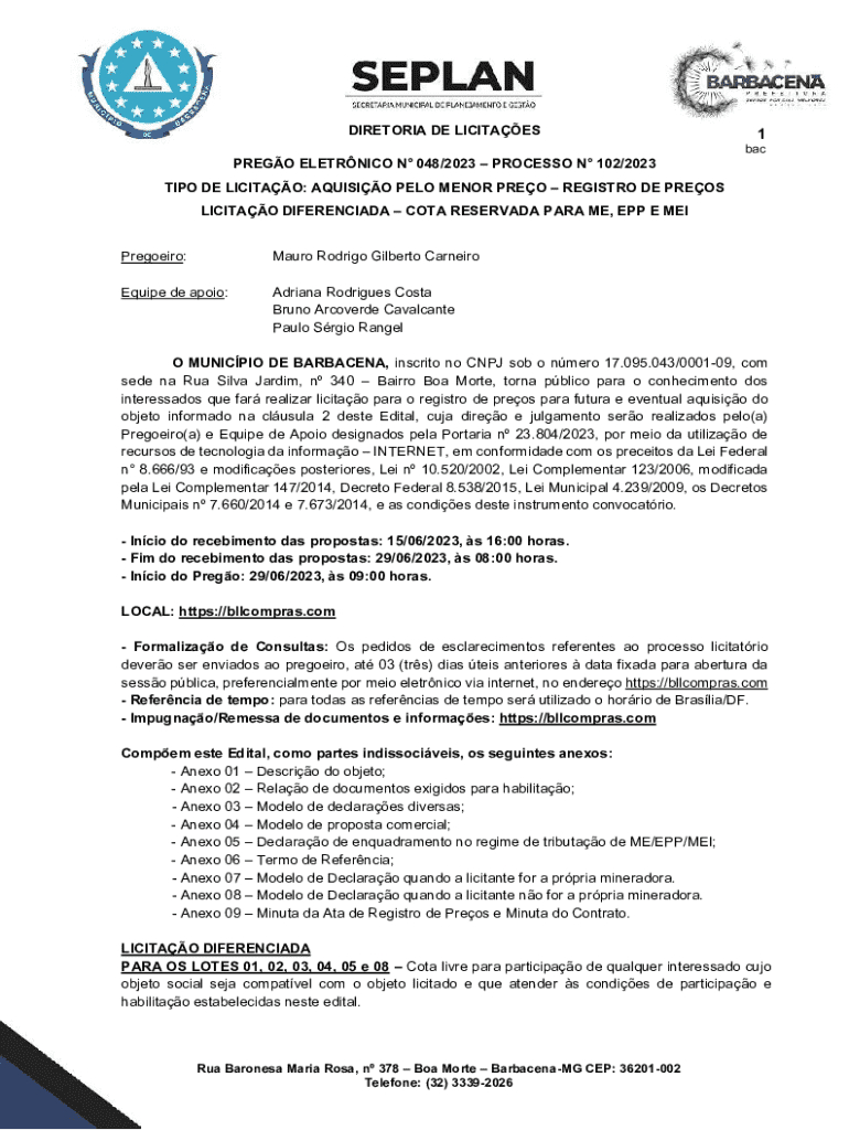 Obtenha o gratuito objeto informado na clusula 2 deste Edital, cuja direo e julgamento sero reali...