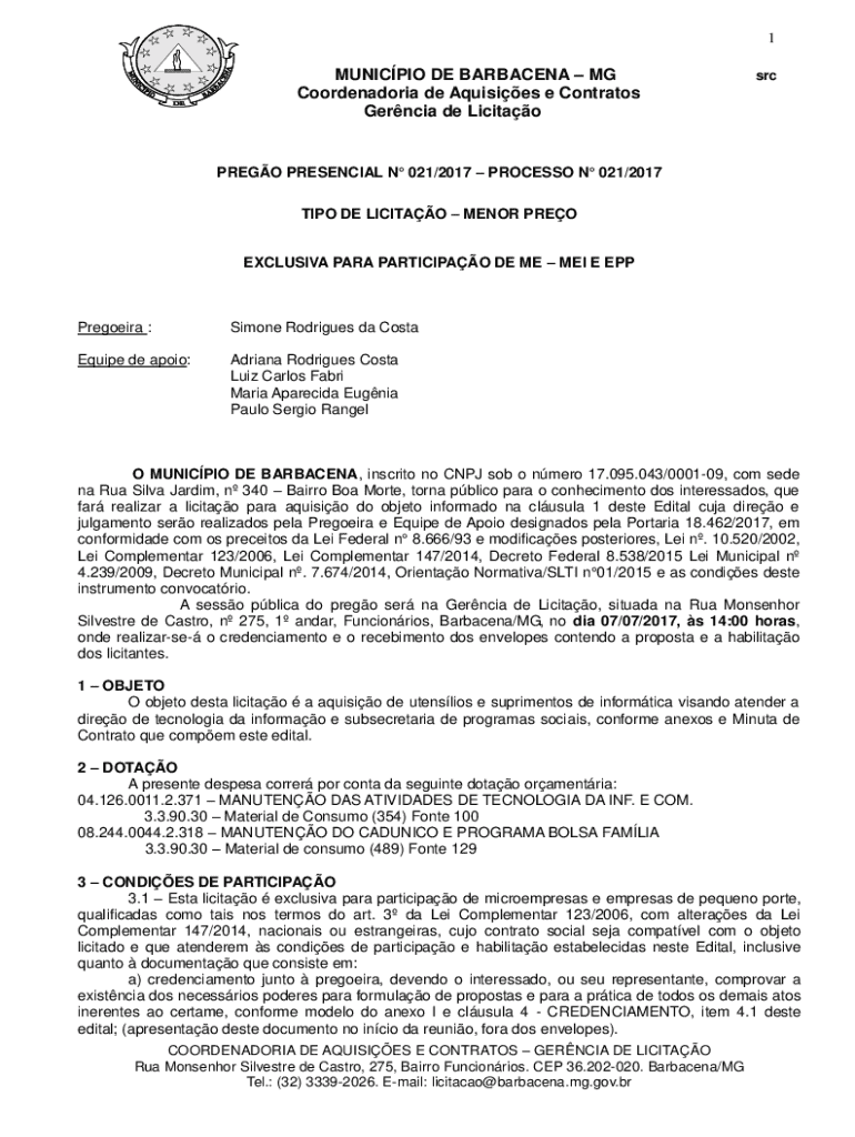 Garcia de LicitaosrcPREGO PRESENCE N 021/2017 PROCESS N 021/2017