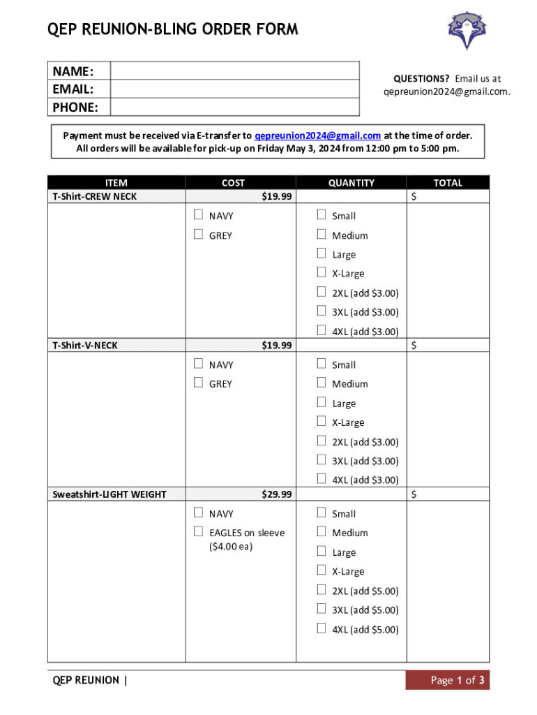 qepreunion2024@gmail.com. Payment must be received via Transfer to qepreunion2024@gmail.com at the time of order.