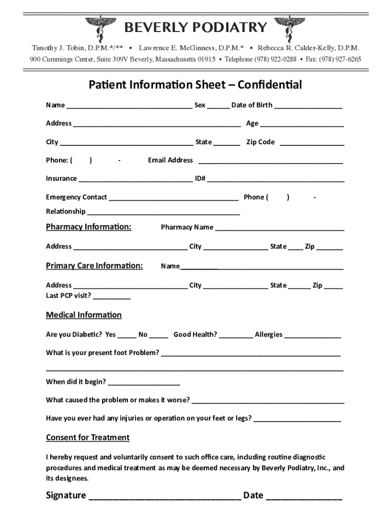 BEVERLY PODIATRY Timothy J. Robin, D.P.M.*/** Lawrence E. McGinnis, D.P.M.* Rebecca R. Calder Kelly, D.P.M.900 Cummings Center, Suite 309V Beverly, Massachusetts 01915 Telephone (978) 9220288 Fax: