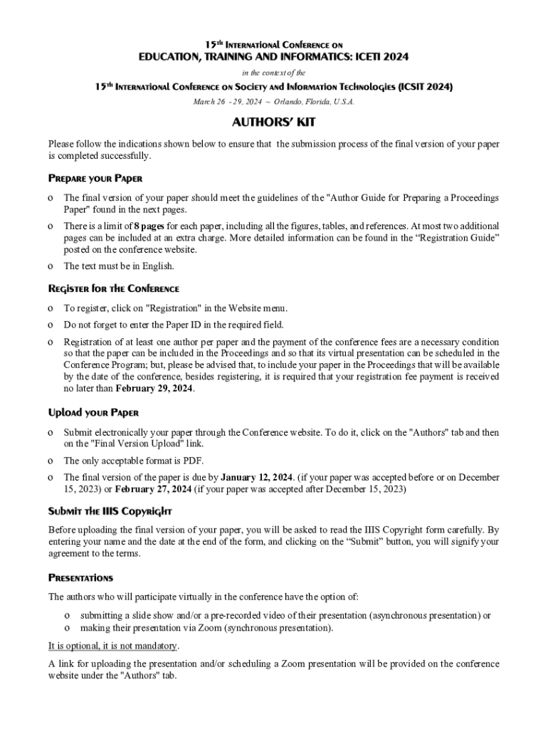March 26 29, 2024 Orlando, Florida, U.S.A. Please follow the indications shown below to ensure that the submission process of the final version of your paper