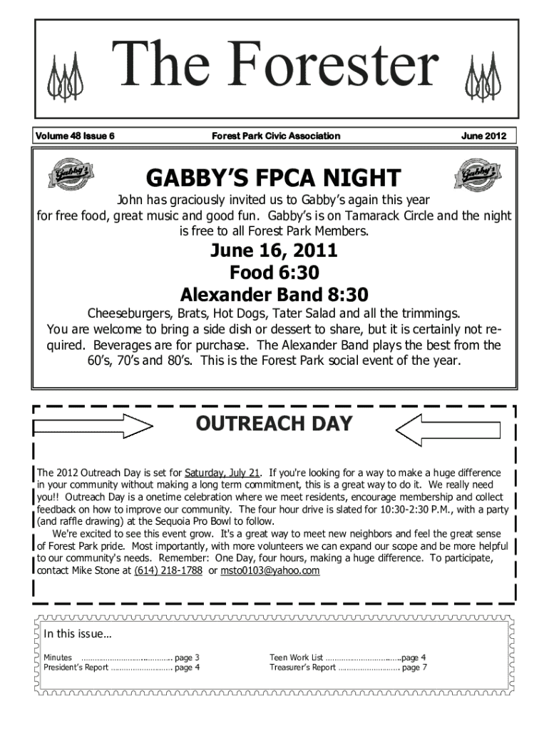 FORESTERjune 20121The ForesterVolume 48 Issue 6Forest Park Civic Association June 2012GABBYS FCA NIGHT