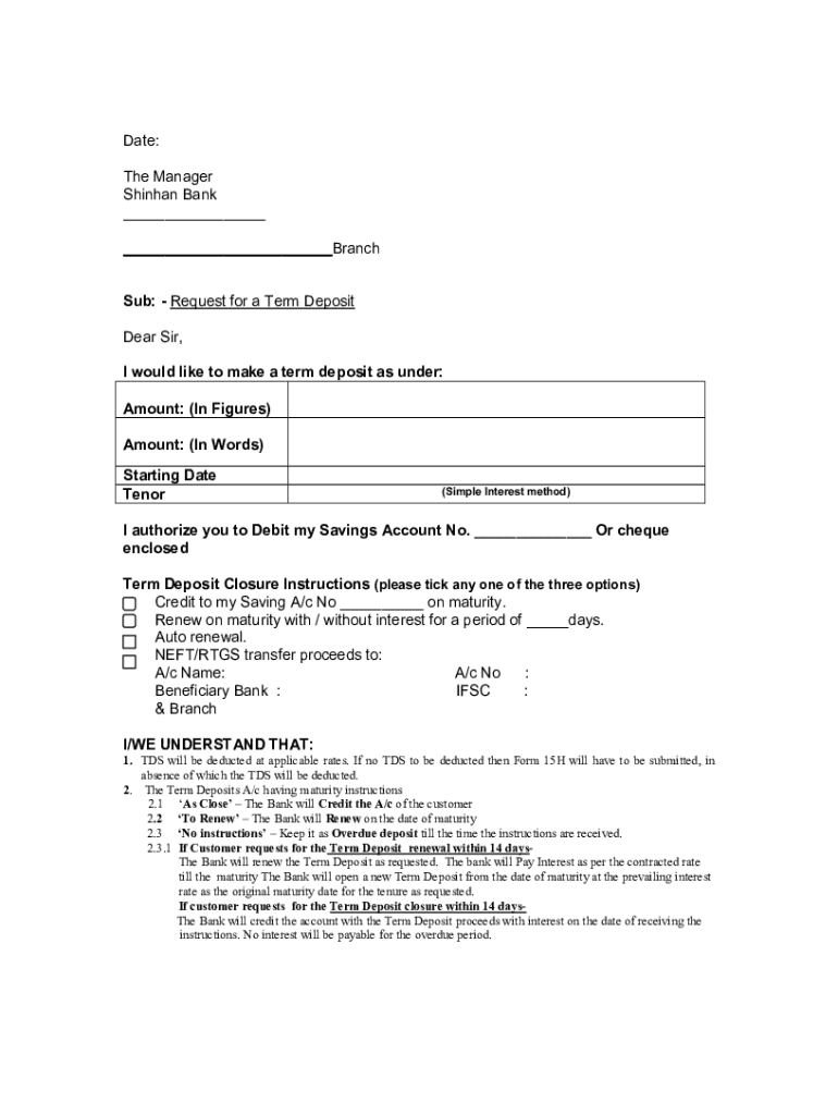 Sub: Request for a Term Deposit