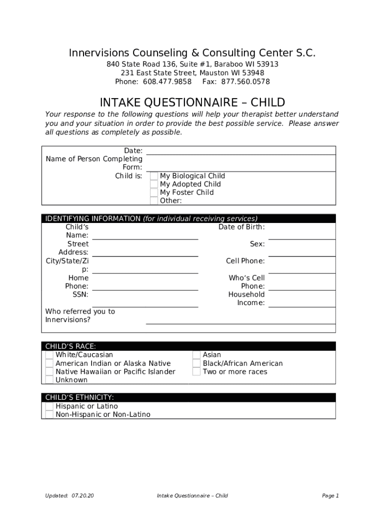 Instructions for the Innervisions Counseling, 840 State Road 136, Baraboo, WI form