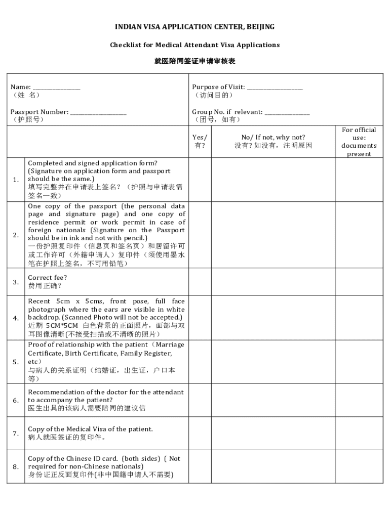Checklist for Medical Attendant Visa Applications